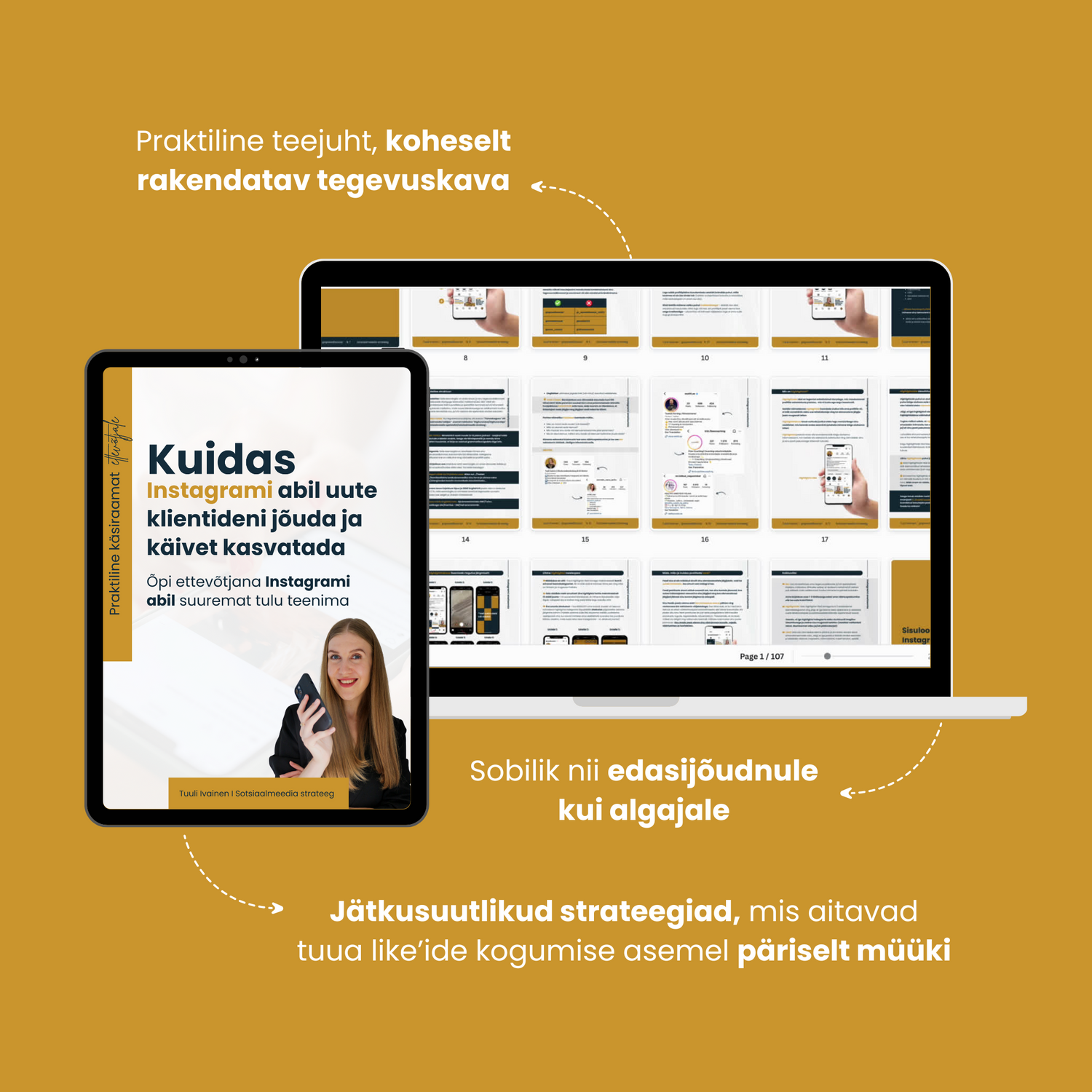 Jätkusuutlikud turundusstrateegiad, mida rakendades saad Instagramist oma ärile tulutoova turundus- ja müügikanalina luua. Käsiraamatu abil mõistad Instagrami kui turunduskanali olemust läbi ja lõhki ning oskad koheselt tegudele asuda.