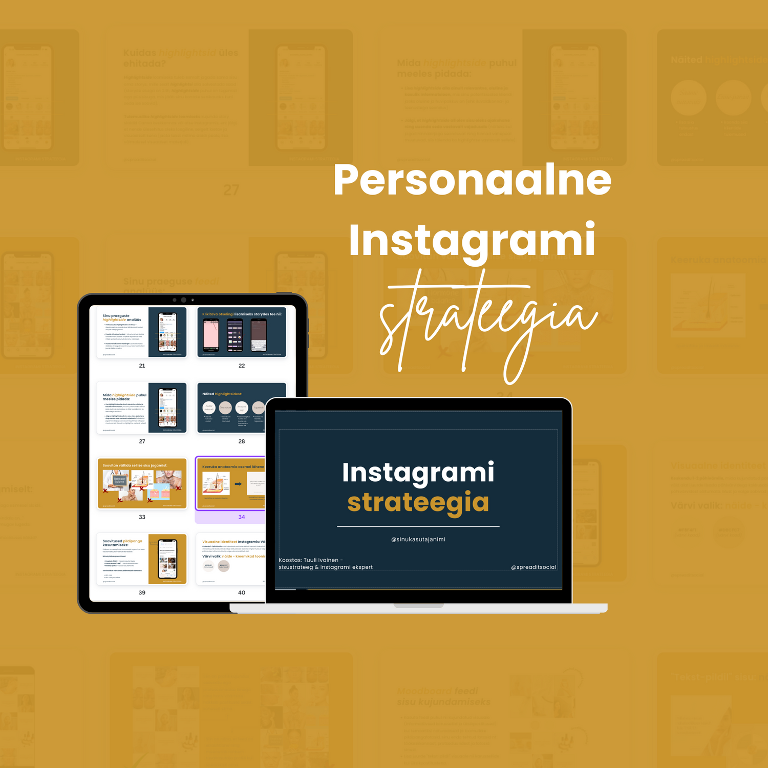Kirjalikus PDF-formaadis valmislahendus samm-sammulise tegevuskava näol, mis arvestab sinu äri eripärasid ja ärilisi eesmärke ning aitab sul Instagramis soovitud tulemusteni jõuda. Sulle jääb vaid tegudele asumise vaev.